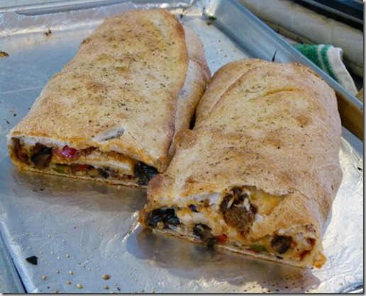 While visiting one of my bread delivery customers, an awesome Italian restaurant, I was tempted by the display of pizza and boli’s in the display case. I knew it did not have time to order a pizza, and I didn’t have all the ingredients at home to make one, but I knew I had some Gardein Beefless Tips that I could turn into a Stromboli.
