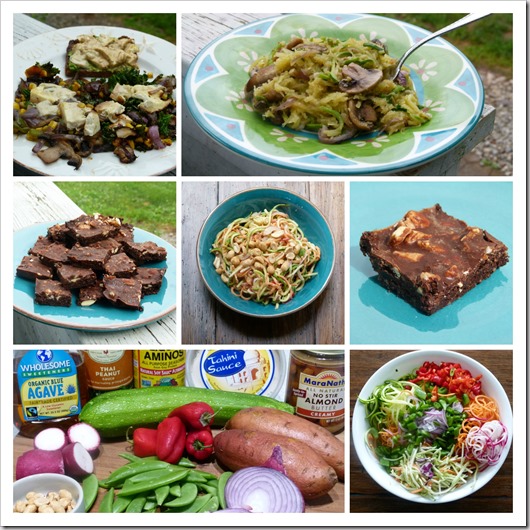 Rain, rain, go away, you have been visiting everyday. My garden and I love the daily rainfall, but my hair and my photos, not so much. At least everything is growing! I have been happily eating as many seasonal fruits and veggies as I can. Summer makes it so easy to be gluten free and vegan. I hope you enjoy this day of veg packed food.